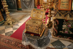 Соборный храм монастыря был построен в 1821 году. Он увенчан типично русскими куполами – «луковками» с позолоченными крестами. Богато украшенный иконостас выполнен русскими мастерами. Согласно правилу, принятому в 1875 году, службы в этом храме совершаются на двух языках – греческом и славянском.