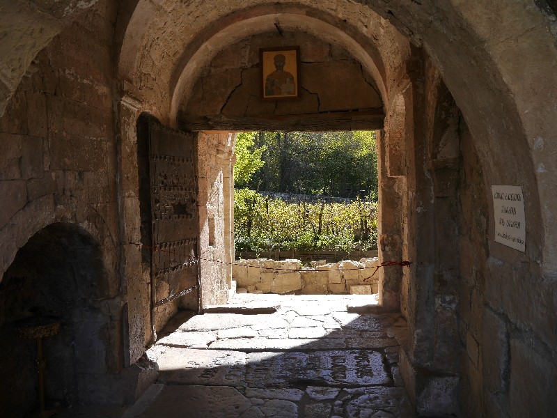 К сожалению, Давид IV не успел завершить устройство обители. Он ушел из жизни в возрасте 36 лет, поручив своему сыну Димитрию закончить строительство. В завещании Давид написал: «Остался монастырь, усыпальница моя и костница детей моих, неоконченным, и уношу я с собой вечную тоску. Сын мой Димитрий пусть завершит его навеки для меня, для себя и моего потомства». Давид настолько любил эту обитель, что выбрал ее и местом своего упокоения. Причем, по смирению своему, приказал похоронить себя во святых вратах, чтобы все входящие попирали ногами его могилу. На надгробной плите написано: «Это покой мой навеки, здесь вселюсь, ибо я возжелал его».