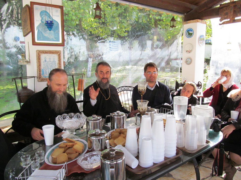 Насколько известно, монастырь на этом месте существует с 1706 года, до этого здесь стоял древний храм. Отец Поликарп по греческой традиции угощал нас ципурой, вином, кофе, лукумом. И за дружеской беседой рассказывал о своем духовном наставнике – Старце Паисии Святогорце.