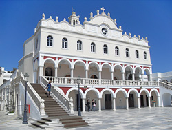 Одной монахине, по имени Пелагия явилась Богородица и просила передать духовенству острова, что пришло время достать из земли её чудотворную икону, которая была спрятана на месте храма, сожженного в X веке арабскими пиратами. После некоторых колебаний Пелагия рассказала местному епископу о чудном явлении ей Пресвятой Девы. Он в свою очередь созвал всех христиан острова и передал им рассказ монахини. Все с воодушевлением занялись раскопками. После долгих поисков икону действительно обнаружили на месте, где когда-то стоял древний храм. Она состояла из двух частей. Их соединили и перед всеми предстал образ Богородицы принимающей благую весть от архангела Гавриила, который протягивает Ей лилию. Икона пролежала в земле около 800 лет, но краски на ней сохранились. Некоторые историки считают, что эта икона была написана в первые века христианства. С момента её обретения и до сегодняшнего дня от нее произошли тысячи чудес. В наши дни Собор Благовещения принимает более миллиона паломников в год.