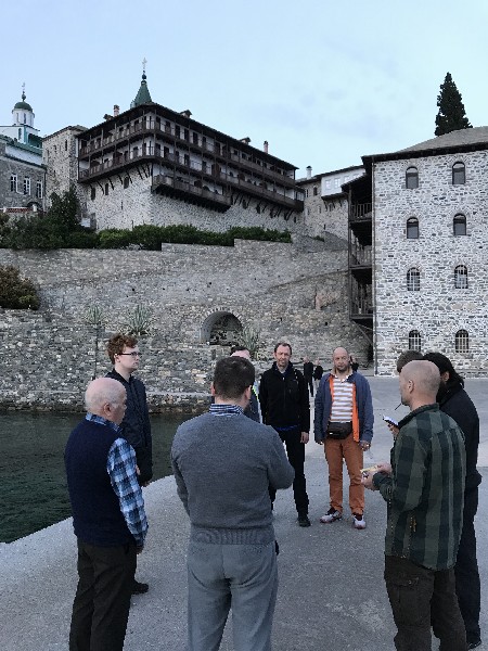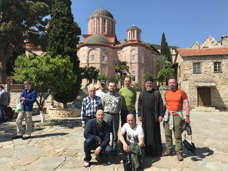 И вот, наша вторая группа получила возможность попасть в самый большой греческий монастырь – Ватопед. Но это уже было после посещения монастырей Каракала, Филофея, Иверона и Пантократора. Всё это мы успели за один день. Благо теперь на Афоне ходят современные микроавтобусы, на которых можно за пару дней объездить весь Афон. Но наша программа довольно разнообразна. Мы и пешком много ходим, и транспорт нам помогает сэкономить время и силы. Теперь немного о монастырях, которые мы посетили по дороге в Ватопед.