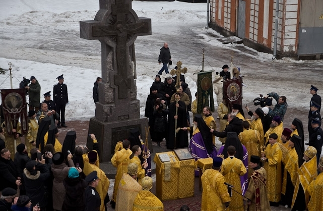 Установку креста предварил торжественный крестный ход из Свято-Троицкого собора по набережной реки Монастырки, совершенный духовенством и верующими Русской Православной Церкви Московского Патриархата и Русской Православной Зарубежной Церкви.