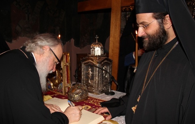 Сегодня в 9 часов утра Патриарх Московский и всея Руси Кирилл прибыл в афинский монастырь Святых Небесных Сил Бесплотных Петраки, где поклонился святыням обители и оставил запись в гостевой книге.