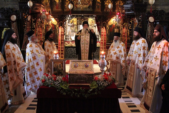 Архимандрит Нектарий, основатель этих монастырей, к сожалению, не мог участвовать в Божественной Литургии по причине болезни, и молился на игуменском месте, а потом произнес проникновенное слово о жизни святой Моники.