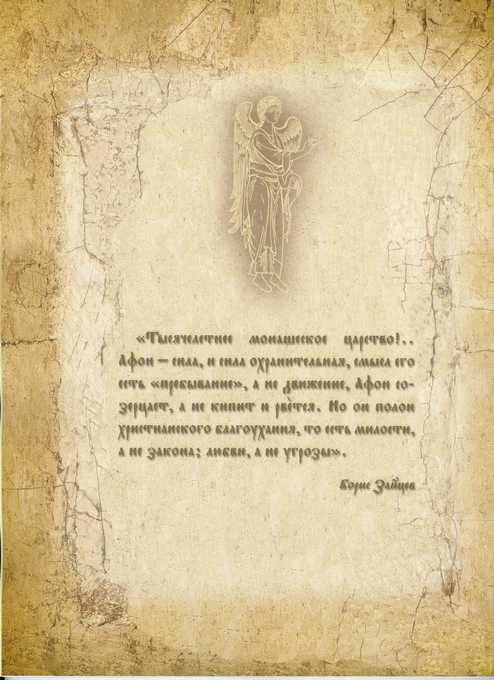 Слова афонских подвижников, тут и там встречающиеся на страницах издания, создают особую атмосферу погружения в духовную жизнь Святой Горы, а великолепные фотографии позволяют совершить настоящее фото-паломничество.