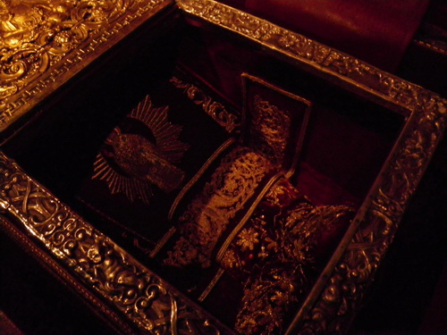 Кроме того, достоверный факт, что изнашиваются не только тапочки, но и ризы святителя. И один раз в году мощи полностью переодевают. Матушка N из Украины узнала об этом, когда совершала паломничество на остров Корфу, и попросила благословения у священника собора святителя Спиридона на изготовление пояса. Она вышила пояс именно так, как благословил священник.