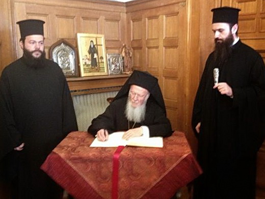 В свою очередь Патриарх Варфоломей выразил свои добрые пожелания в гостевой книге Архиепископии.