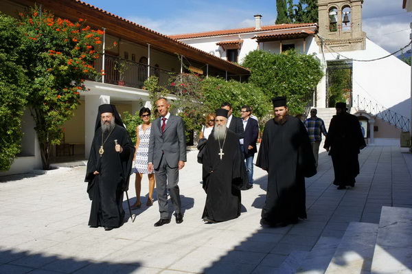 После этого господин Посол побывал в святой обители Панагии Гирокомитисы и поклонился чтимому образу Богородицы. Архимандрит Симеон, наместник монастыря, пригласил гостей на монашескую трапезу.