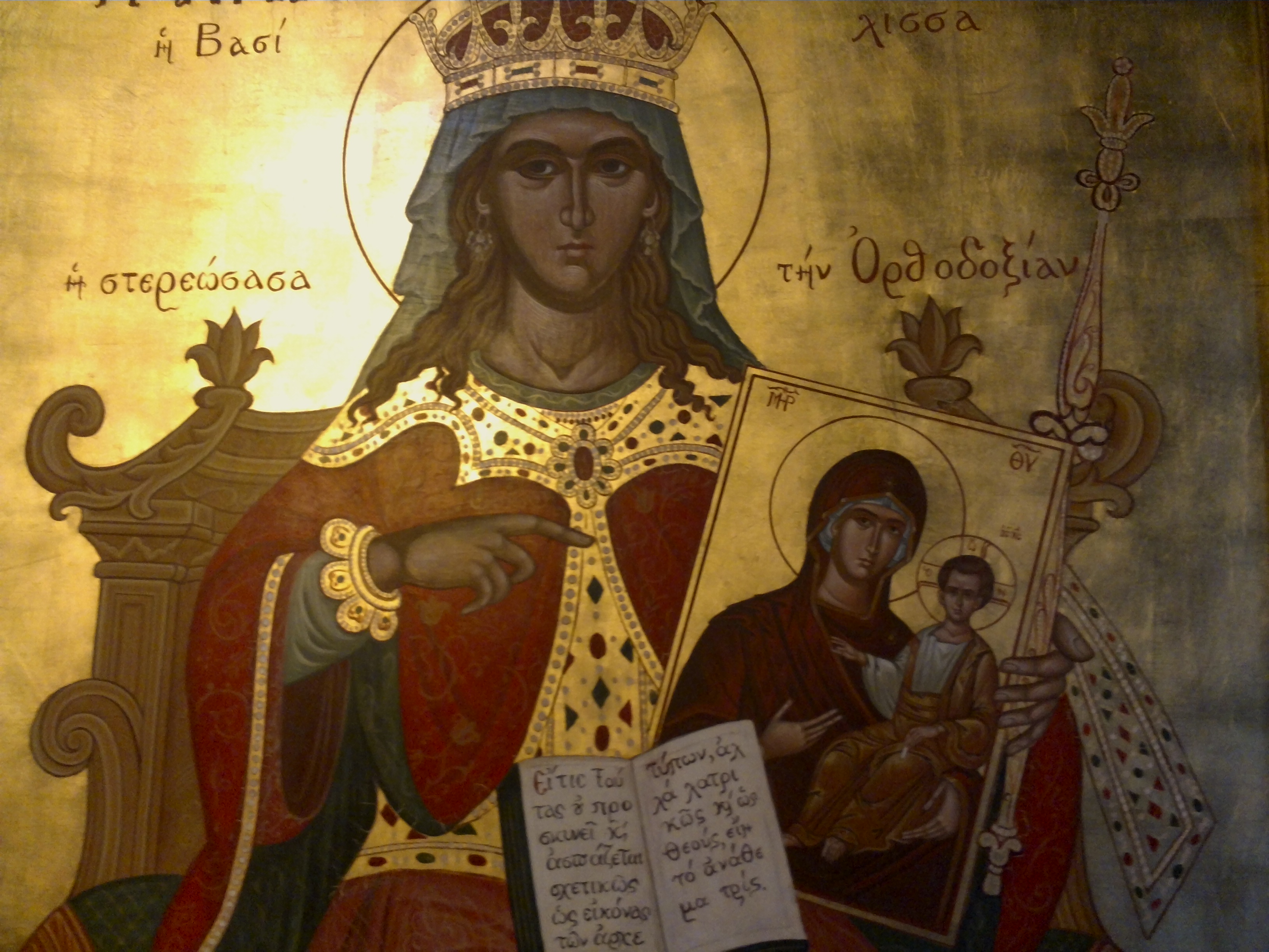 Будучи супругой иконоборца Феофила, Феодора тайно чтила иконы и старалась приучить к этому детей, а после кончины супруга, став регентшей, восстановила иконопочитание. И день этот ежегодно почитается Церковью в первое воскресенье Великого поста, как Торжество Православия.