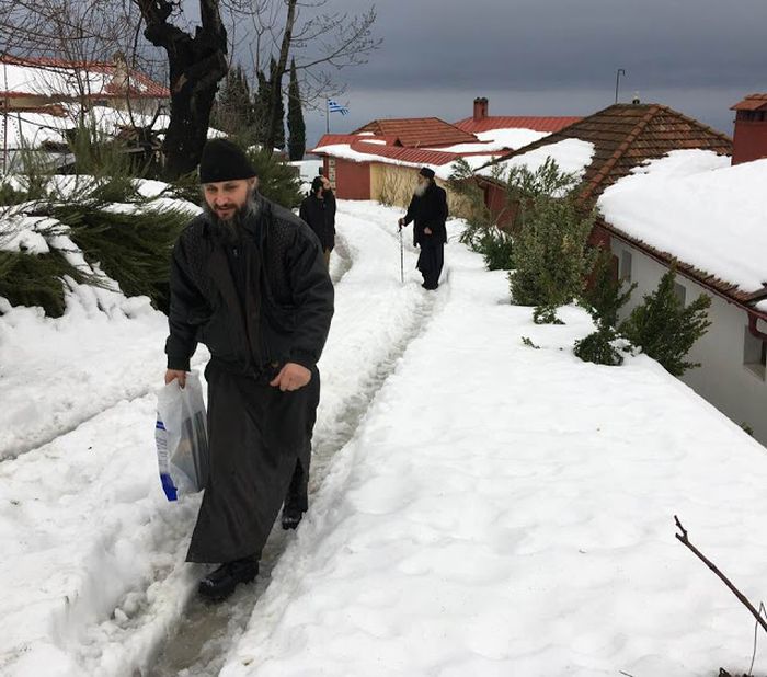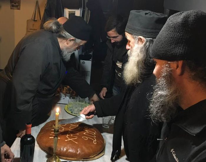 Пройдем с монахами путь по заснеженной горе Афон от келии Маруда до келии Милопотамос, где старцы Макарий, Павел, Епифаний и Иоахим вместе с несколькими паломниками разделяют василопиту. Так монахи отмечали встречу Нового года. По греческому обычаю, василопита - хлеб, испеченный во имя святителя Василия Великого, память которого празднуется 1 января - разделяется между родственниками и друзьями в честь Новолетия.