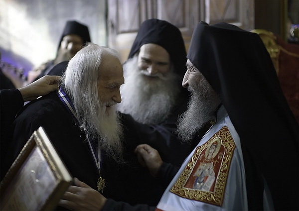 Вчера старец-архимантдрит Иеремия (Алехин), наместник русского Свято-Пантелеимонова монастыря был награжден орденом Андрея Первозванного к 99-летию со дня рождения. За свою долгую жизнь отец Иеремия пережил и ссылку, и ГУЛАГ, и фашистский концлагерь. В этом году исполнилось 40 лет, как отец Иеремия несет монашеский подвиг на Афоне, и 35 лет, как он является наместником русского монастыря.